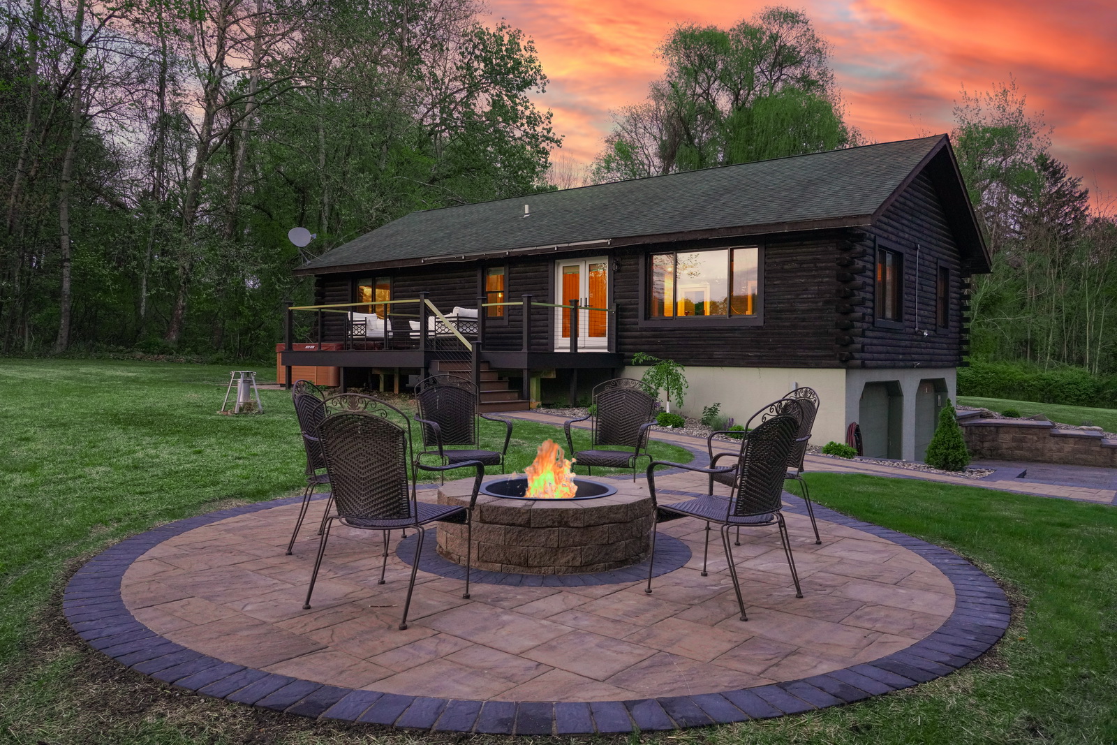 Nestled in the tranquil embrace of nature, this luxury cabin is a picturesque retreat in Marlboro, NY, beautiful Ulster County just outside of New York City. With its rustic log exterior and modern amenities, the cabin offers a perfect blend of comfort and charm. Surrounded by lush greenery and situated near a serene lake, it provides an ideal escape from the hustle and bustle of urban life. The spacious deck and outdoor seating area are perfect for relaxing and enjoying the scenic views, while the warm interior lighting exudes a cozy and inviting atmosphere. Whether for a weekend getaway or an extended stay, this cabin promises a peaceful and rejuvenating experience.